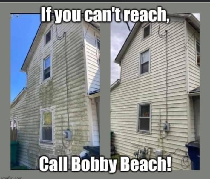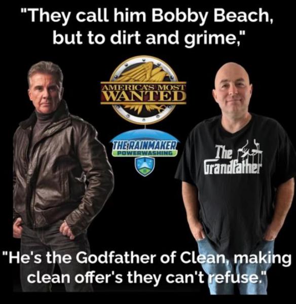 A morning spotlight at one of his jobsites before he gets going on the job! Hes landed a few on this street already! People referring you to their neighbors is a good thing! Good to see you again Bobby Beach. Proud of you. The Rainmaker Powerwashing LLC. The Rainmaker Powerwashing